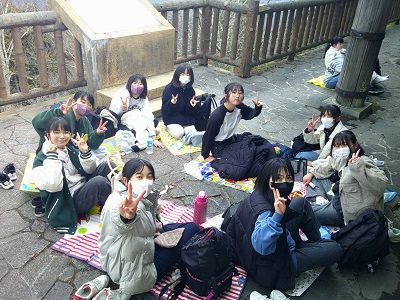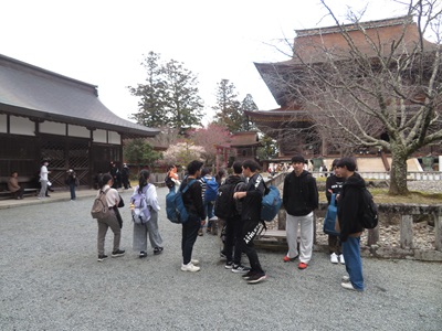 行事 吉野山ウォーキング 2024年3月16日 2024年3月16日 3月8日(金)に吉野山ウォーキングを実施しました。昨年のウォーキングは学年ごとに異なったコースで実施しましたが、今年は中1~高2までの全ての学年が吉野山を訪れました。この日は3月にしては少々肌寒い気温でしたが、生徒たちは友人とのおしゃべりを楽しみながら、元気よく坂道を登っていました。