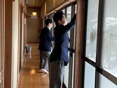 | 毎日清掃奉仕も行います | 校長先生も激励に来てくれました |