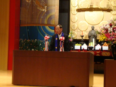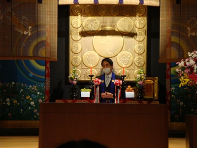 | 一人ひとり念珠をいただきます | 理事長先生のお諭し |