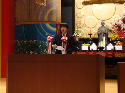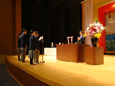 | 在校生代表(生徒会長)のお祝いのことば | 新入生代表の宣誓 |
