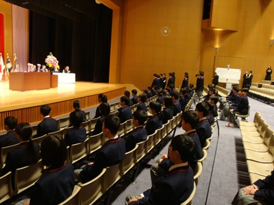 | 校長先生の告辞 | たくさんの来賓の方から祝辞をいただきます |