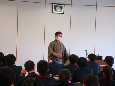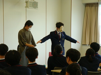 行事 高1 能楽鑑賞事前学習会 2024年4月18日 2024年4月18日 高等部1年生対象能楽鑑賞教室の事前学習会を、4月16日(火)に、金春流能楽師金春穂高先生をお招きして実施しました。会では能楽の基本的知識、謡(うたい)の持つ意味をはじめ、実際に使われる能面の説明などがありました。能楽鑑賞教室は、4月21日(日)『奈良春日野国際フォーラム甍』能楽ホールにおいて行われます。