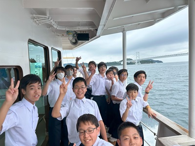 7月9日(火)~12日(金)、中学部2年生は智辯和歌山校の生徒とともに、淡路臨海学校を実施しました。今年はあいにくの天候のためにカッター訓練は中止となりましたが、徐々に天候も回復し、周辺の観光や観潮船クルーズは行うことができました。仲間たちと楽しい4日間を過ごすことができました。