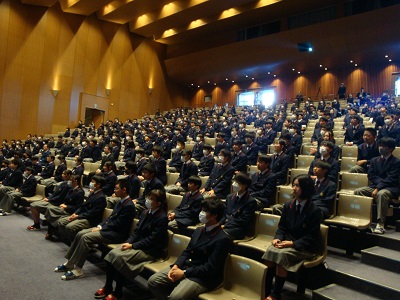 11月21日(木)、宇宙航空研究開発機構(JAXA)の佐々木 貴広先生に『旅する心で宇宙を探る』と題してご講演をいただきました。佐々木先生は、智辯学園中学・高等学校を卒業された研究者で、智辯時代、大学・大学院時代の話をはじめ、これまでどのような活動をどこでしてきたかをわかり易くお話しくださいました。特に、さまざまな国において研究に従事した話はとても興味深く、生徒たちも熱心に聴き入っていました。兄弟校の先輩がJAXAで研究を行い、活躍している様子を聞くことで、生徒たちの夢や希望もより膨らんだことでしょう。