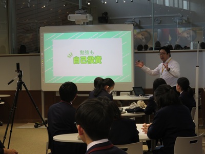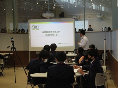 奈良カレッジで今年度から実施されているSTEAM教育の一環として、SMBCコンシューマーファイナンス株式会社の 牟田 久志 様をお招きして、中学2年生を対象とした金融経済教育セミナーを実施しました。今回のセミナーは2月7日と2月14日の2回にわたって実施されました。1回目の2月7日はPCでマインクラフトを使った金融教育ゲーム「クエストオブファイナンス」を実施して、お金のやり取りの難しさや課題を学びました。2回目の2月14日はグループワークをしながら株価の変動について学びました。