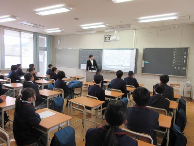 一人ひとり念珠を受け取ります。 藤田校長の式辞