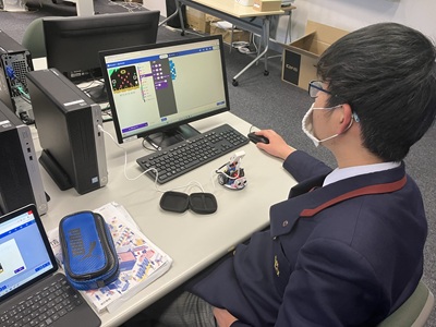 Steam教育 マイクロビット 2025年4月13日 2025年9月6日 情報Ⅰの授業で、小型コンピュータボードのマイクロビットを使って、プログラミングを行いながら、音楽を奏でたり、ロボカーを自動操作しながら衝突回避したり、ライン上を走行させたりしました。