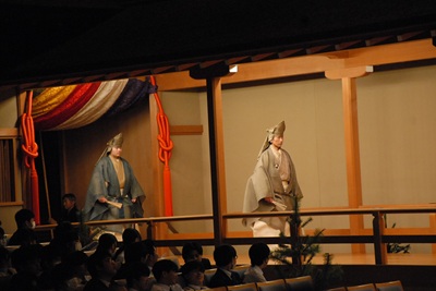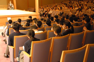 4月20日(日)、高等部1年生は、奈良春日野国際フォーラム 甍 の能楽ホールで行われた「奈良金春会演能会」を能楽鑑賞教室として見学しました。能・金春流「源氏供養」、狂言・大蔵流「二九十八」、能・金春流「融」を鑑賞し、舞や謡の様子、和楽器の演奏など、能の舞台がどのように進められるかを実際に体験しました。(写真は能楽協会の許可を得て撮影しています。無断転用を禁止いたします。)