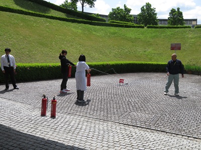 行事 防火避難訓練 2025年5月7日 2025年5月7日 5月7日(水)、奈良カレッジで防火避難訓練を実施しました。この訓練では、小学部・中学部・高等部の児童・生徒全員が決められた経路を通って、一時避難先に避難しました。避難後、校長先生から講評がありました。その後のホームルームでは火災や地震がおこったときの心構えや注意について話し合いました。また、消火器や消火栓を使用する訓練が先生方で行われました。