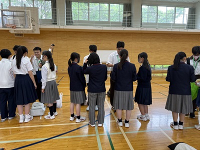 | 中学部3年生との交流① | 中学部3年生との交流② |