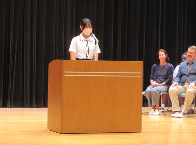 | 生徒代表歓迎のことば(生徒会副会長) | 留学生代表挨拶 |