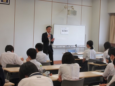 6月24日(火)、奈良新聞社編集部部長の増山 和樹先生をお招きし、本校で推進しているキャリア教育において必須となるインタビューの方法を学ぶ講座を開催しました。中学3年生は、キャリア教育の一環として、生徒たちが関心の高い職業を選んで実際にインタビューを行い、結果を発表しています。今回はその手始めとして、これから実際に行うインタビューの基本を講師先生をお招きして学びました。