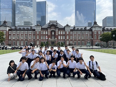 8月28日(木)~29日(金)の二日間、中学3年生23名が東京大学見学会に参加しました。一日目は東京大学のキャンパス内を見学し、その後工学部バイオハイブリッドシステム研究室で培養肉や匂いを感知する細胞センサなどのお話を聞かせていただきました。夜にはホテルで、現在智辯学園出身で東京大学に通っている先輩方に、勉強方法やモチベーションの保ち方などたくさんアドバイスをいただきました。二日目には国土交通省を訪問し、職員の方に国土交通省の果たす役割などについて教えていただきました。たくさんの方々にお話を聞かせていただき、非常に充実した二日間でした。