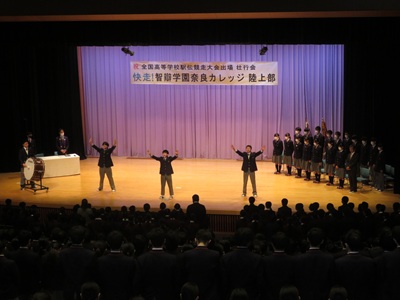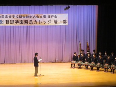 12月10日(水)、全国高校駅伝に出場する奈良カレッジ陸上競技部の壮行会が講堂で行われました。
