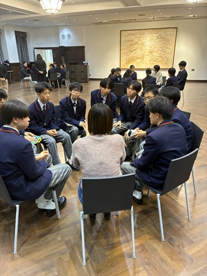 12⽉11⽇(⽊)に⾼⼤連携による学問探究プログラムとして、⾼等部1年⽣が⼤阪⼤学を訪問しました。⼤阪⼤学では、キャリアセンターと共催で講演会、⼤学⽣との座談会が実施されました。加えて、大阪⼤学博物館の⾒学、⼤学の授業の聴講(⼤阪⼤学キャリアセンター副センター⻑の家島明彦先⽣による「現代キャリアデザイン論Ⅱ」)にも参加しました。今回のプログラムでは、⼤学において学問探究を深めるためのキャリアデザインについて学び、考えを深めることができました。今回学んだことは、今後の進路選択や、さらには⼈⽣設計において大きな糧となることでしょう。