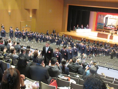 「蛍の光」・「仰げば尊し」の斉唱 卒業生の退場です