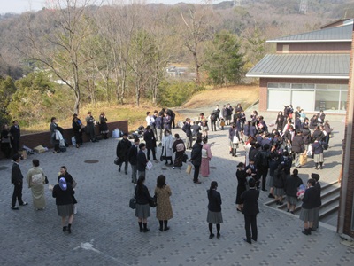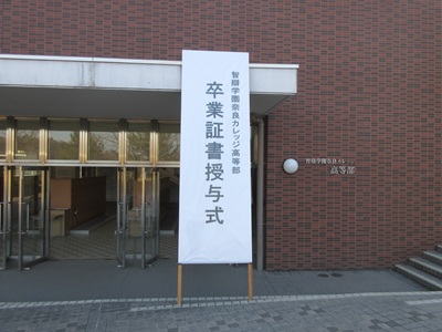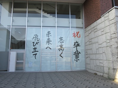 エントランス前の看板です 卒業生の入場です