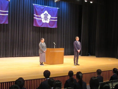 生徒会副会長による歓迎のことば 新入生代表生徒の挨拶