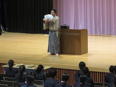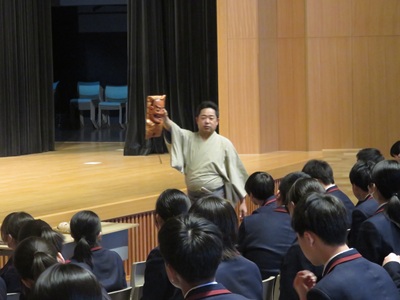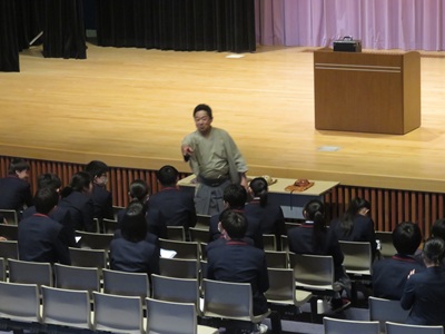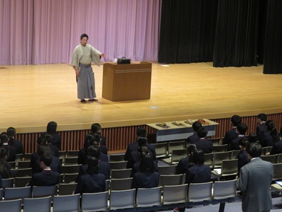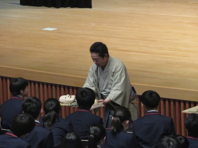 行事 高1能楽鑑賞教室事前学習会 2026年4月14日 2026年4月14日 4月14日(火)高等部1年生を対象に、能楽鑑賞教室の事前学習会を、金春流能楽師金春穂高先生をお招きして奈良カレッジ講堂で実施しました。会で金春先生は、能楽の基本的知識、謡(うたい)の持つ意味を、実演を交えながら熱心に説明してくださいました。能楽鑑賞教室は、4月19日(日)『奈良春日野国際フォーラム甍』能楽ホールにおいて行われます。