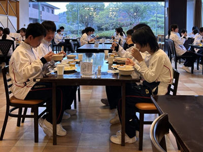 | 食事の時はみんな楽しそう! | 校長先生も激励に来てくれました |