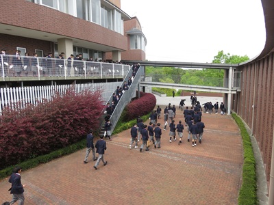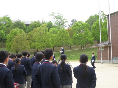4月22日(水)、奈良カレッジで防火避難訓練を実施しました。この訓練では、小学部・中学部・高等部の児童・生徒全員が決められた経路を通って、一時避難先に避難しました。避難後、校長先生から講評がありました。その後のホームルームでは火災や地震がおこったときの心構えや注意について話し合いました。また、消火器や消火栓を使用する訓練が先生方で行われました。