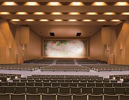 約1200名を収容できる徳の殿堂。厳かな雰囲気の中、全校生徒がそろって行事に参加する。