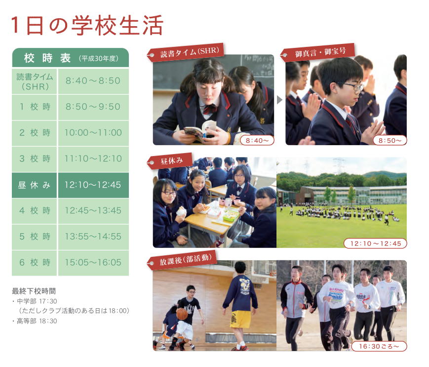 | 10月 | 中間考査清掃奉仕活動 陸上競技大会 研修旅行(中3) 修学旅行(高2) |