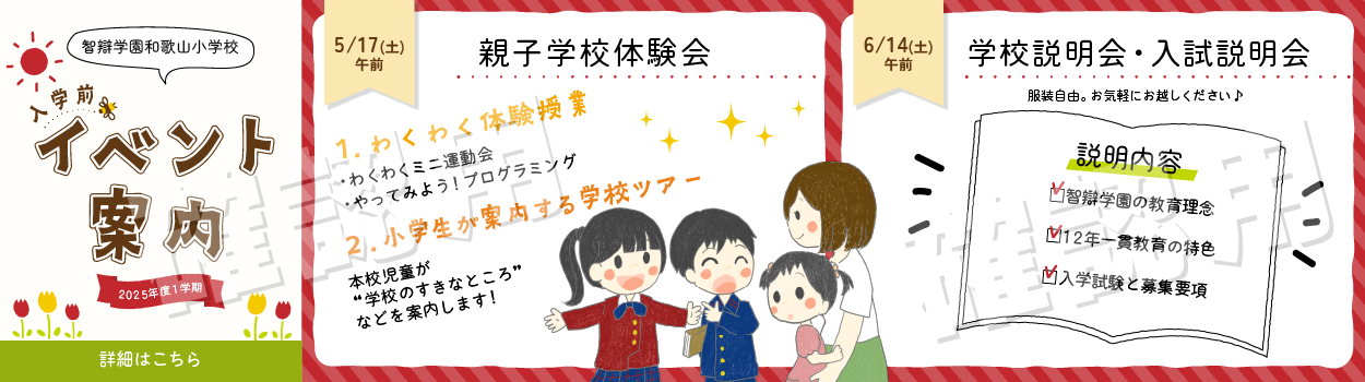 智辯学園和歌山小学校のホームページおよびSNS等で提供している文章や画像、映像等は本校の著作物です。権利者の許可なく複製、転用などの二次利用は固くお断りいたします。また学校法人智辯学園では、生徒・保護者・教職員・学校関係者の人権保護のため、個人のホームページやSNS等で、名誉毀損やプライバシー侵害を受けた場合には、顧問弁護士と相談の上、情報の削除、撤回の要請をいたします。それらに応じない場合は法的措置をとらせていただくことがあります。学園に関わる全ての方々が安心・安全な生活を送ることが出来ますようご理解ご協力をお願い申し上げます。