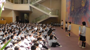 その他 子どもの日の集会 2015年5月2日 2015年5月2日 G.W.前に少し早く、子どもの日の集会を開きました。エントランスにこいのぼりや和紙でつくったかぶとや菖蒲の絵を飾りました。 会の司会進行は児童会執行部が行います。集会では執行部が準備した行事についてのクイズ発表や 校長先生からのお話がありました。 昼食では、皆でちまきを食べました。「おいし~い」「先生、もう一本ないの」と、 今年も大好評でした。