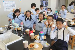 その他 4年生 おにぎり昼食 2015年10月29日 2015年10月29日 4年生がおにぎり昼食をとりました。みんなで植えた稲からできたお米を炊き、自分で握ったおにぎりは格別だったようで、「さいこう!」「うまい!」「おかわり!」と目を輝かせて食べました。
