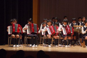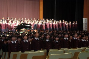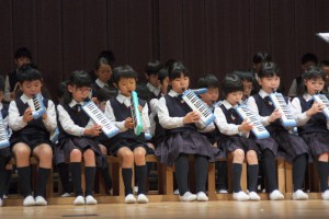 講堂では1~5年生が学年の発表と音楽発表、6年生が音楽発表で合奏と合唱をしました。