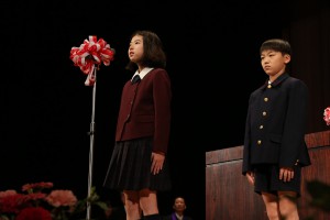 校長先生から入学許可宣言。 在校生代表の歓迎の言葉。