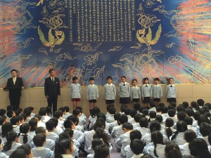 その後、校長先生からのお話を聞き、全員で「せいくらべ」と「こいのぼり」を歌いました。