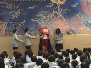 集会では、昨年度の執行部によるこどもの日の行事についてのクイズがありました。
