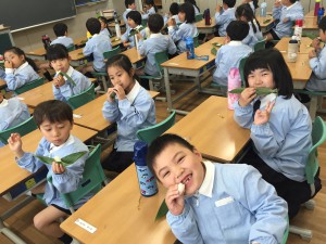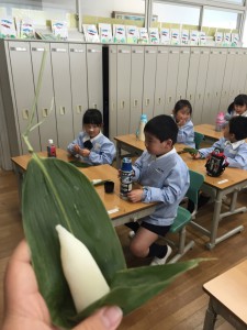 最後は教室に戻り、粽を食べました。にこにこ笑顔の子ども達の姿が印象的でした。