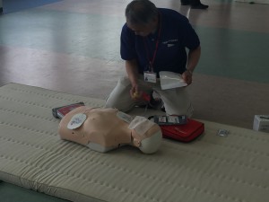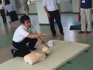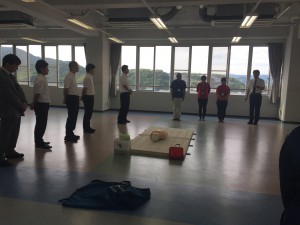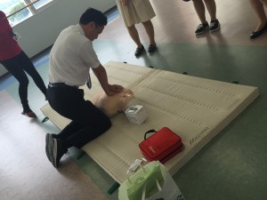 講習会では、心肺蘇生法とAEDの使い方について、実習を踏まえて救急救命の方法を教えていただきました。