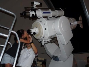 当日はグループに分かれて、天体望遠鏡を使っての星の観察、プラネタリウムやビデオ鑑賞、ペーパークラフトなどを行いました。