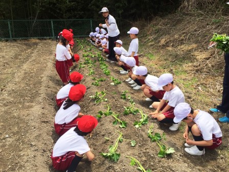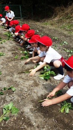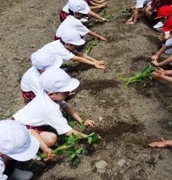 みんなで楽しく植えました。終わってからも「せんせい、おいもを食べるのが楽しみ!」と笑顔いっぱいでした。