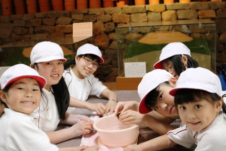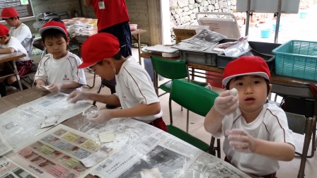 難しい説明や作業も6年生が丁寧にサポートしてくれ、ぴかぴかの勾玉が完成しました。6年生が片付けをてきぱきと進める様子に、1年生は「はやい!」「6年生ってすごいな~」と感心していました。