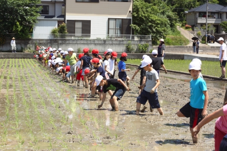| 6月に田植えをしました。 | 1つ1つ手作業で丁寧に・・・ |