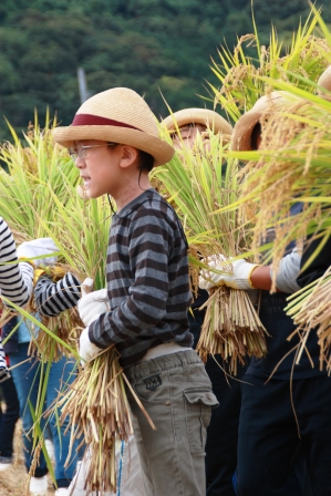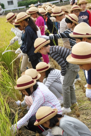 9月15日に4年生で稲刈りに行ってきました。6月の田植えから3ヶ月、どろどろだった田んぼもすっかりと干上がり、たくさんのお米をつけた稲穂がずっしりと頭を垂れていました。立派に育った稲穂を見たときの子ども達の嬉しそうな顔がとても印象的でした。