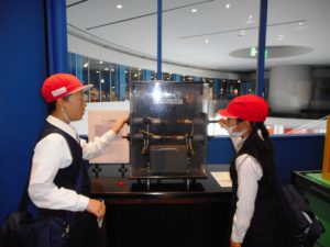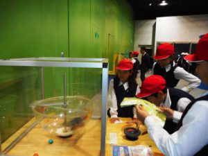 大阪市立科学館では、4階「宇宙とその発見」、3階「身近に化学」、2階「おやこで科学」、1階「電気とエネルギー」と順に見学しました。展示物の中には、これまで学習した内容のものや今学習している「ふりこ」などがありました。難しい内容のものもありましたが、説明を一生懸命読んでいました。また、実際に体を動かしながら学習できる工夫がされており、汗をかきながら楽しく学ぶことができました。