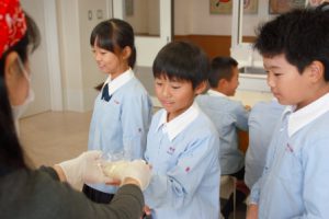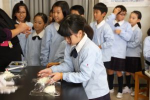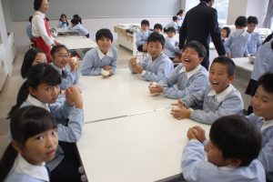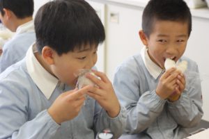 行事 4年生 おにぎり昼食 2017年10月30日 2018年3月30日 先日稲刈りをして収穫したお米で、おにぎり昼食会を行いました。 学級委員の方々にもお手伝いいただき、一人1つずつ、自分でおにぎりを握る体験をすることができました。 「今まで食べた中で一番美味しい」と、子ども達の笑顔があふれていました。 一粒の米に込められている万人の力を実感し、感謝の心で頂く、よい経験となりました。