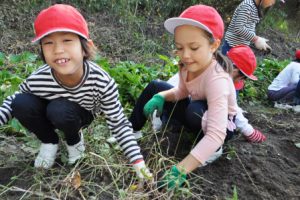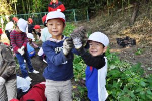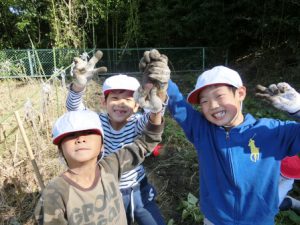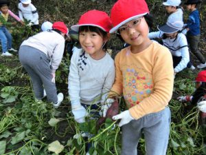 これまで何度か草抜き、水やりをしてお世話をしてきましたが、土の中がどうなっているのか、上手くさつまいもができているのか、子ども達はドキドキしていました。