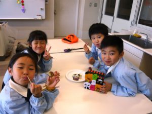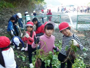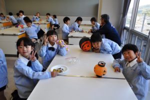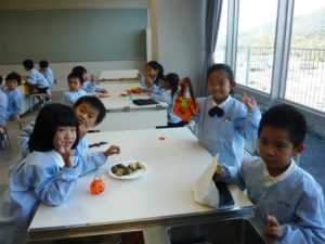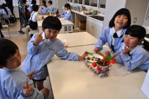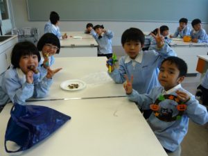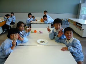 1年生が、10月26日(木)にさつまいもの収穫を行い、翌週の11月1日(水)に収穫祭をしました。