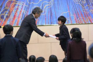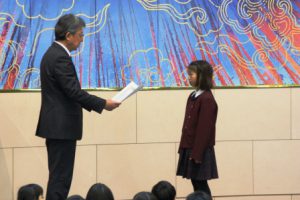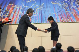 12月の感謝祭が行われました。最初に表彰式があり、たくさんの児童が表彰を受けました。 ・