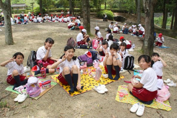 ワクワク。ドキドキ。1年生は初めての遠足。6年生は最後の遠足。6年生と1年生がペアを組み、それぞれの思いを胸に、みんな元気に出発しました。