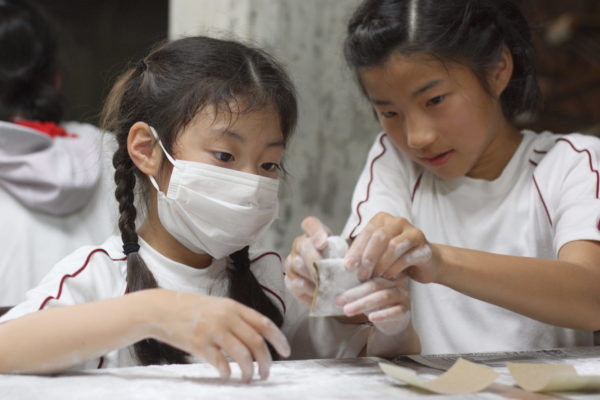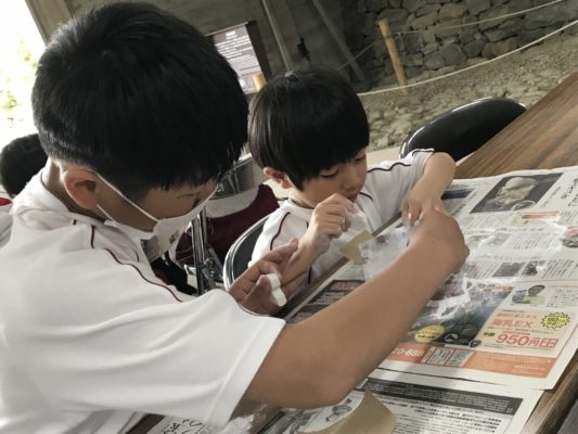 勾玉づくりでは、6年生がしっかりとペアの1年生の作業を手伝い、みんながそれぞれの勾玉をつくることができました。