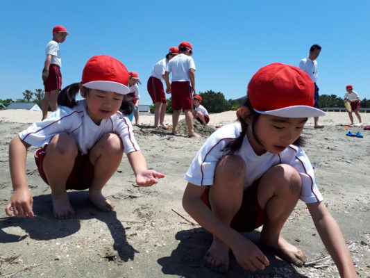 2年生と5年生で、片男波へ行きました。