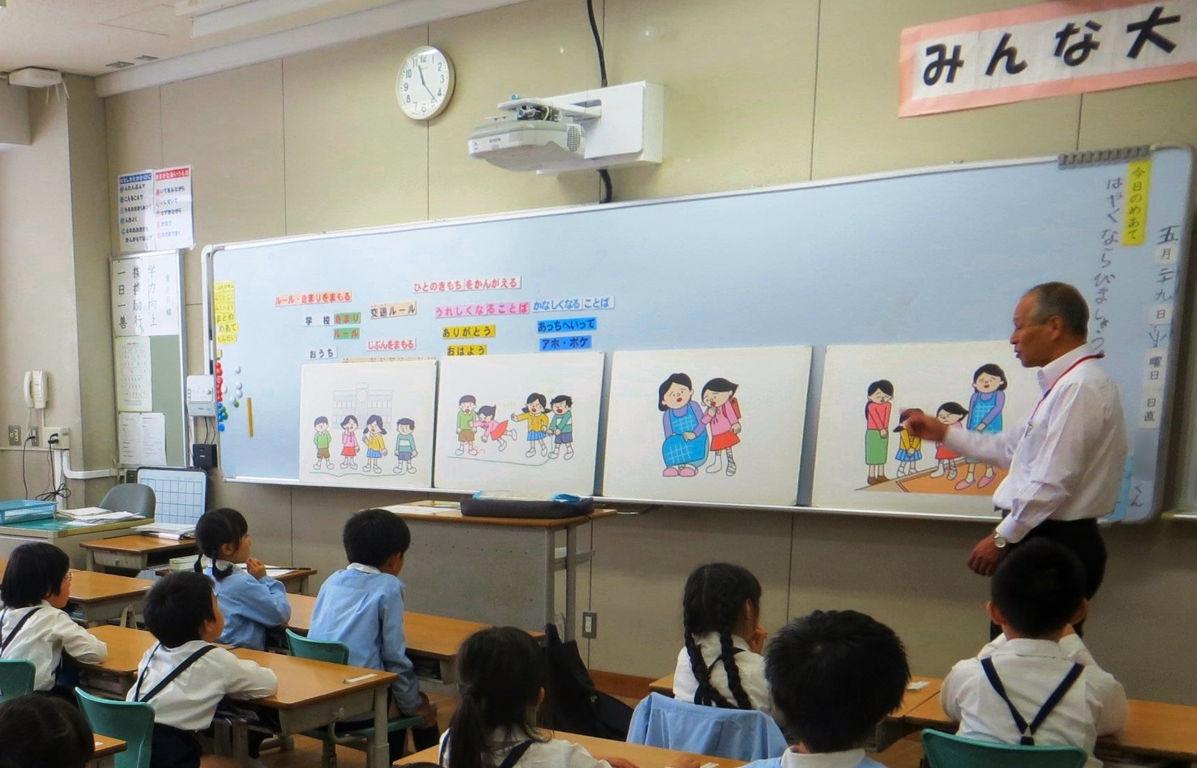 情操教育 【安全教育】キッズサポートスクール 2018年5月29日 和歌山県警察本部の少年サポートセンターの方より、2,5年生を対象に、子ども達への防犯・規範意識を伸ばすための、キッズサポートスクールをしていただきました。 ①「不審者に気をつけよう」と、②「いやなおもいをさせると」という2つのテーマで話していただきました。 ①「不審者に気をつけよう」 具体的な場面を元に、「知らない人を...